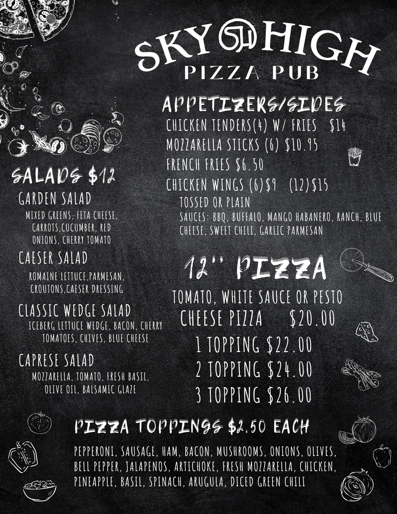 Whether you're indulging in a night out or simply grabbing takeout, Sky High Pizza & Pub promises a truly enjoyable dining experience at a moderate price point. Don't forget to try their specialty pizzas during your visit!